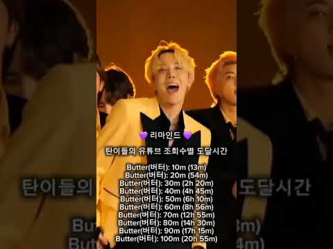 방탄소년단의 버터 뮤비는 1억뷰 도달하기까지 20시간 55분. 과연 이번 아리랑의 타이틀곡 뮤비는?^^ #bts2026 #bt… 3시간전 방탄소년단의 버터 뮤비는 1억뷰 도달하기까지 20시간 55분. 과연 이번 아리랑의 타이틀곡 뮤비는?^^ #bts2026 #bts #bts2026worldtour #bts정규5집