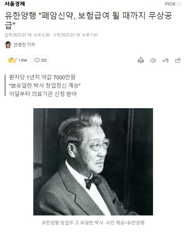 유한양행 "폐암신약 보험급여 될 때까지 무상공급" > 유머 > 링크천국 - 최고의 링크사이트는 바로 여기