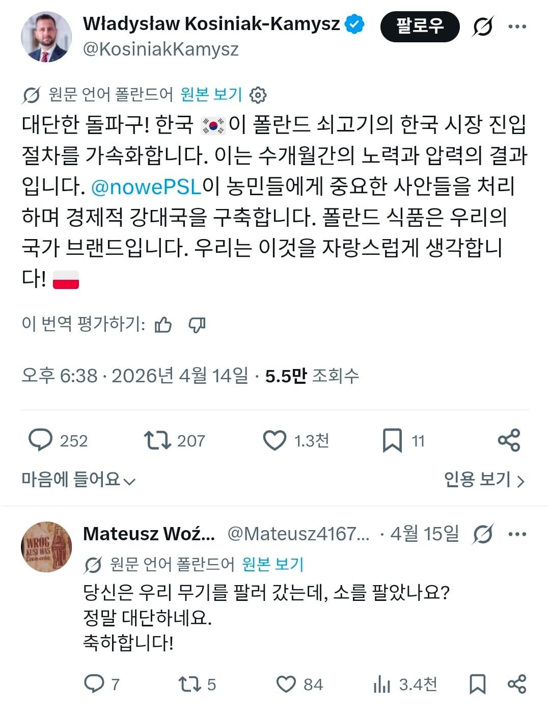 폴란드 장관 "한국에 소고기 수출길 열려 자랑스럽다!" > 유머 > 링크천국 - 최고의 링크사이트는 바로 여기