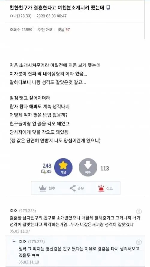 친구의 예비 신부를 빼앗고 싶은 디시인
