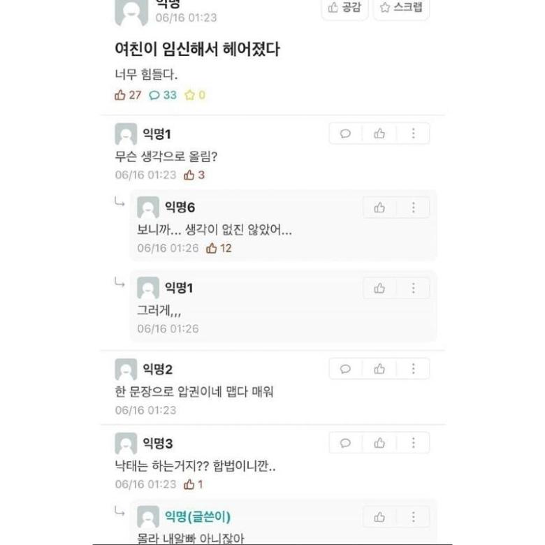 여친이 임신해서 헤어진 남자